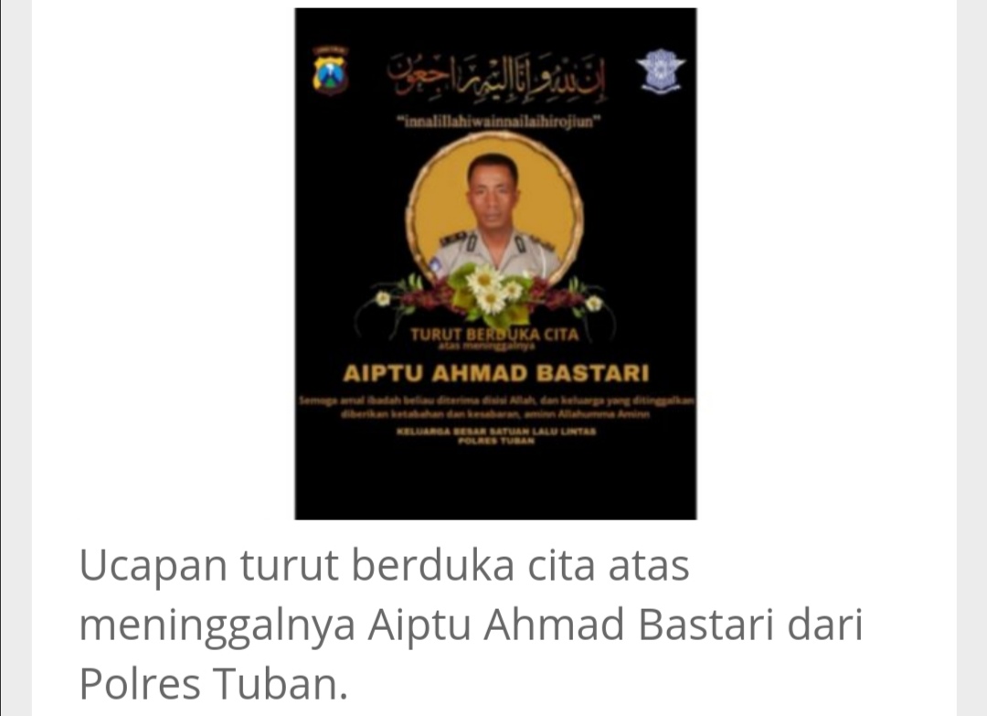 Kabar duka tersebut dibenarkan oleh IPDA Eko Sulistyo, Kanit Laka Satlantas Polres Tuban.
