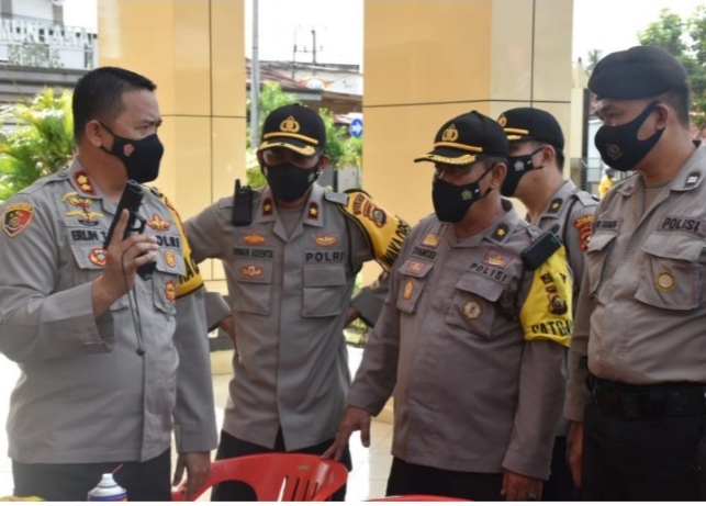 SEKAYU — Usai pelaksanaan apel pagi, Kapolres Musi Banyuasin melakukan pemeriksaan seluruh senjata api (senpi) yang digunakan oleh personelnya di halaman Polres Muba, Selasa (17/11/2020).