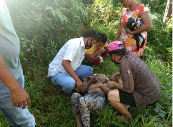 Warga sekitar menemukan wanita lanjut usia terkapar di bantaran sungai.