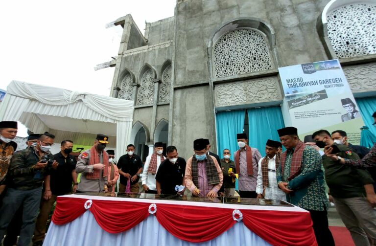 BUKITTINGGI—Wakil Presiden RI ke X dan XII, Jusuf Kalla, meresmikan penggunaan Masjid Tabligiyah Garegeh, Jumat (17/3/2022).