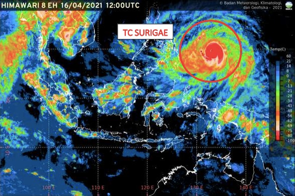 JAKARTA – Siklon Tropis Surigae Sabtu (17/4/2021) sedang terjadi di perairan Samudera Pasifik sebelah utara Papua Barat diperkirakan mengalami kenaikan intensitas dalam 24 jam ke depan dan terus bergerak mengarah ke barat laut.