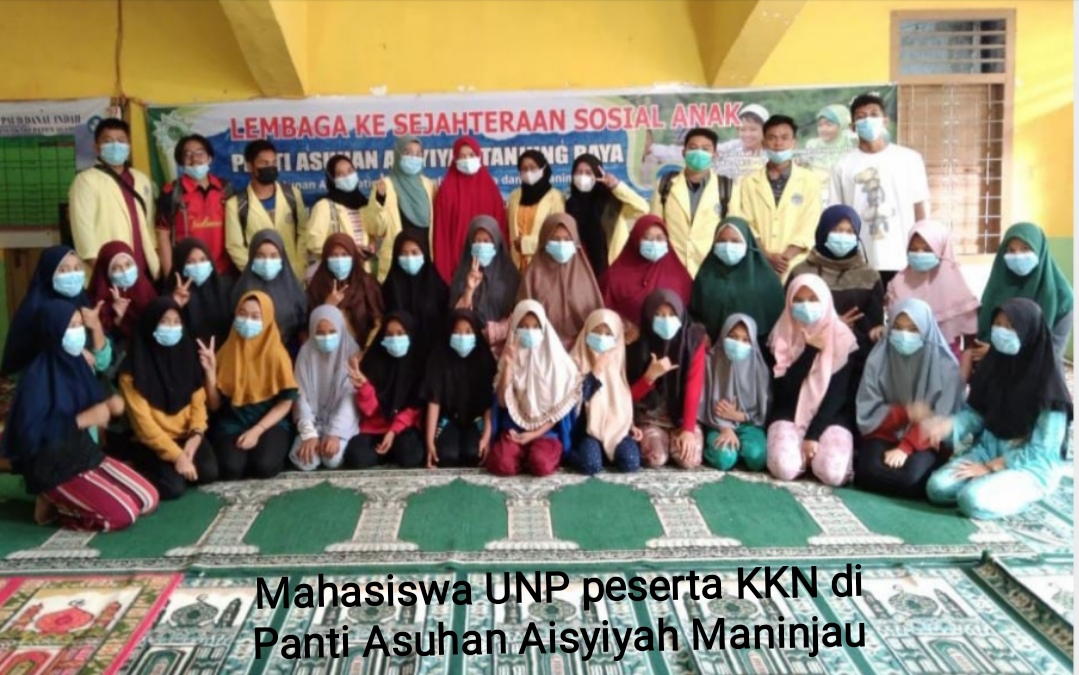 MANINJAU – Sejumlah mahasiswa KKN dari Universitas Negeri Padang melakukan bakti sosial dengan menyalurkan bantuan kepada anak yatim di Panti Asuhan Aisyiyah Maninjau, Kecamatan Tanjung Raya, Kabupaten Agam, Sabtu (17/7/2021).