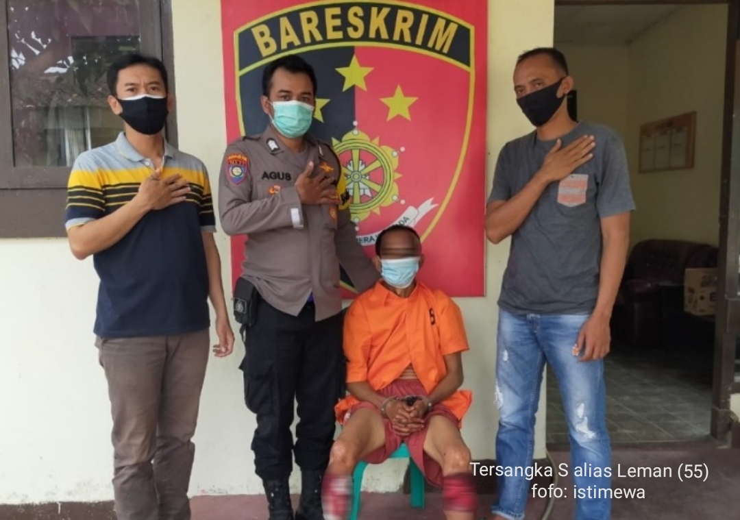 Orang itu bersinial S als Leman (55). Ia ditangkap di rumahnya di dusun Talang Koang Desa Gerning Kecamatan Tegineneng Pesawaran.