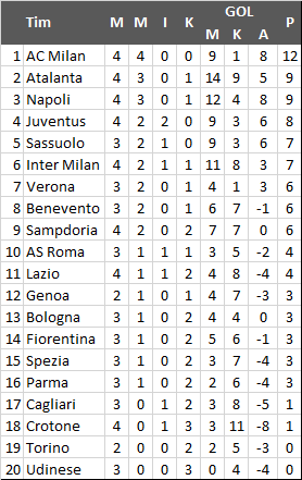 Rossonerri kini mengoleksi 12 poin, unggul tiga poin atas pesaing terdekat Atalanta, yang secara mengenaskan takluk 1-4 di tangan Napoli. Bagi Partenopei, hasil itu membawa mereka menduduki peringkat ketiga dengan delapan poin.