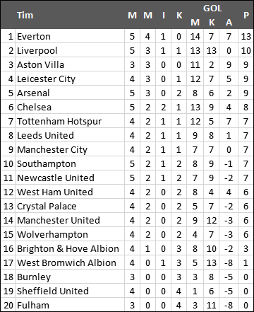 Berikut jadwal dan hasil Liga Inggris pekan kelima (tuan rumah disebut pertama, dalam WIB):