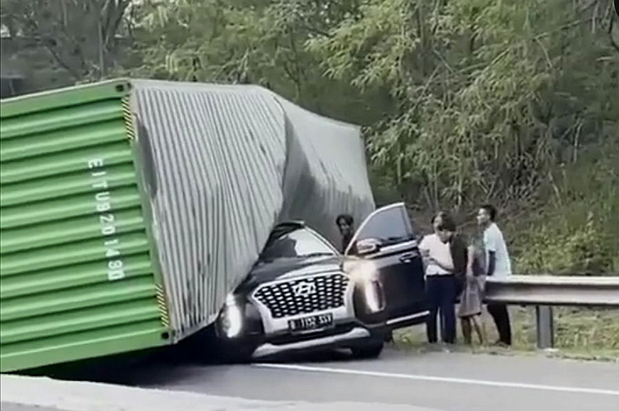 “Truk kontainer itu terguling dan menimpa minibus Hyundai nopol B 1152 SSV yang datang dari arah yang sama,” kata Jamal, Minggu (17/10/2021).