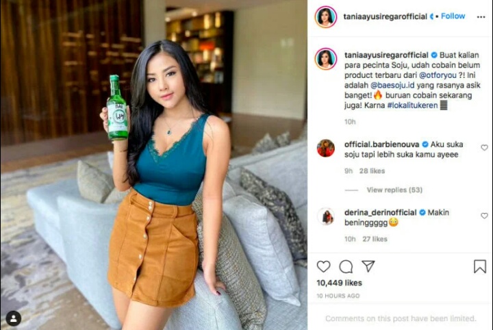 “Buat kalian para pecinta Soju, udah cobain belum product terbaru dari @otforyou?! Ini adalah @baesoju.id yang rasanya asik banget! Buruan cobain sekarang juga! Karena #lokalitukeren,” tulis Tania.