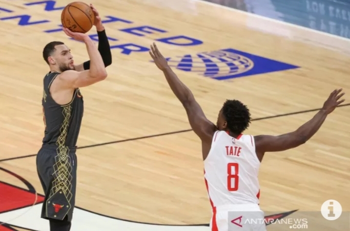 JAKARTA–Zach LaVine mencetak poin tertinggi dalam pertandingan yaitu 33 poin, Lauri Markkanen menambahkan 18 poin dan lima pemain berbeda melesatkan setidaknya tiga lemparan tiga angka untuk membawa tuan rumah Chicago Bulls menang 125-120 atas Houston Rockets, Senin (Selasa WIB).