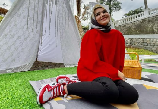 Amanda mengunggah tiga buah foto yang menampilkan dirinya tengah mengenakan baju berwarna merah dan celana hitam. Menariknya, dalam foto-foto tersebut, Amanda tampak mengenakan hijab bermotif bunga-bunga.