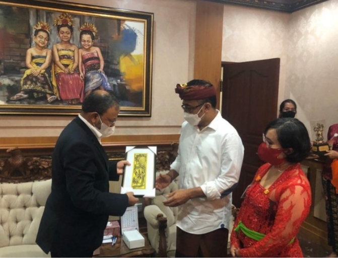 BALI–Pemerintah India menjajaki kerja sama dengan Pemkot Denpasar dalam pengembangan pariwisata berbasis budaya. Hal ini disampaikan Duta Besar India untuk Indonesia Shri Manoj Kumar Bharti saat berkunjung ke Kantor Wali Kota Denpasar.