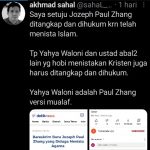 “Yahya Waloni dan ustad abal-abal lain yang hobi menistakan Kristen juga harus ditangkap dan dihukum. Yahya Waloni adalah Paul Zhang versi mualaf,” tulis Sahal.