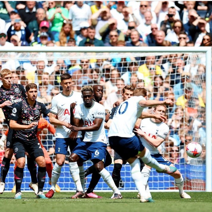 Dejan Kulusevski yang menjadi eksekutor memberi umpan pendek kepada Harry Kane yang dituntaskannya dengan tembakan ke sudut kanan gawang Brentford yang dikawal David Raya. Tottenham memimpin 1-0.