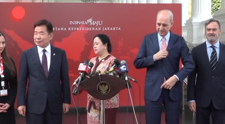 Ketua DPR RI Puan Maharani dan empat pimpinan parlemen negara ekonomi menengah menemui Presiden Jokowi di Istana, Senin (20/11/2023).