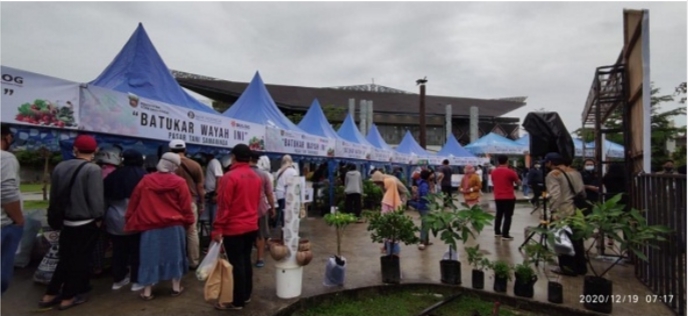 Antusiasme masyarakat tetap dikontrol melalui sistem antri sebelum masuk ke area berbelanja. Masker menjadi atribut wajib bagi orang dewasa serta faceshield untuk anak – anak. Pengukuran suhu serta pembatasan jumlah orang dalam area berbelanja juga dilakukan sehingga pembeli dan penjual memiliki jarak yang aman dalam berinteraksi, meminimalisir kerumunan. Disamping itu, tidak terdapat penjual makanan siap konsumsi sehingga tidak ada alasan untuk membuka masker. Penerapan protokol Covid-19 tidak menyurutkan semangat berbelanja masyarakat tampak dari omset penjualan pada penyelenggaraan itu yang melebihi Rp 50 Juta.