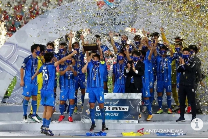 Laga final Liga Champions Asia disaksikan 8.157 penonton yang mengisi tribun Stadion Al Janoub yang berkapasitas 40.000 penonton. Mereka mematuhi ketentuan jaga jarak sosial guna membendung persebaran Covid-19. (antara/dna)