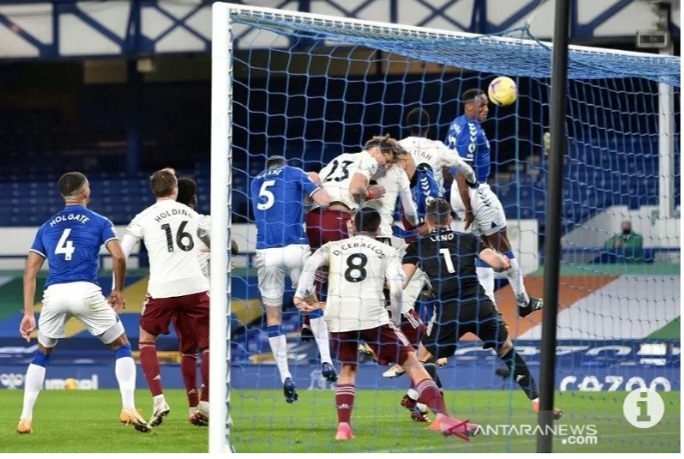 Everton yang berusaha mengendalikan pertandingan sejak kickoff membuka keunggulan pada menit ke-22 berkat gol bunuh diri Rob Holding.