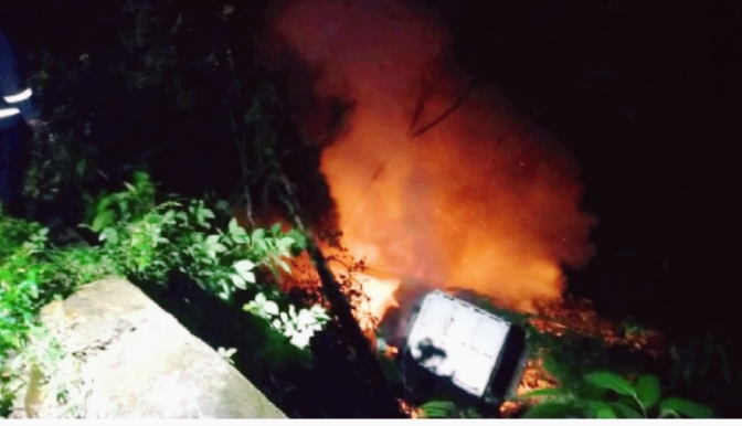 SUMBAR– Sebuah dumptruck Hino nopol BA 9148 OU terjun ke jurang sedalam 100 meter dan terbakar, Kamis (21/1/2021) sekitar pukul 01.00.
