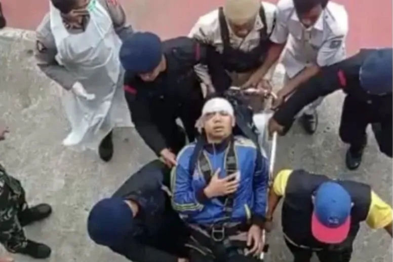 Salah satu korban kecelakaan helikopter yang ditumpangi Kapolda Jambi saat dievakuasi. (Antara/tangkapan layar Dolly Rosyana)