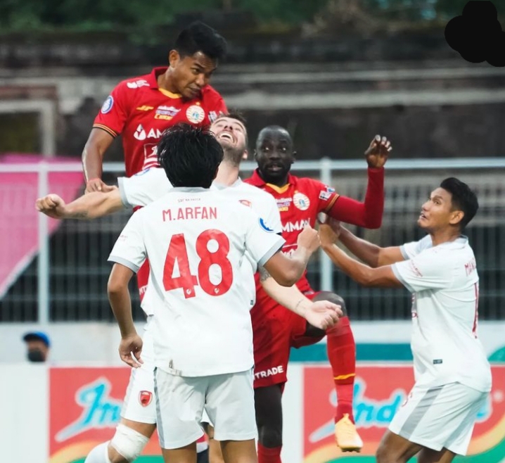 Gelandang serang Makan Konate sukses menyambar bola liar hasil tendangan bebas Syahrian Abimanyu.