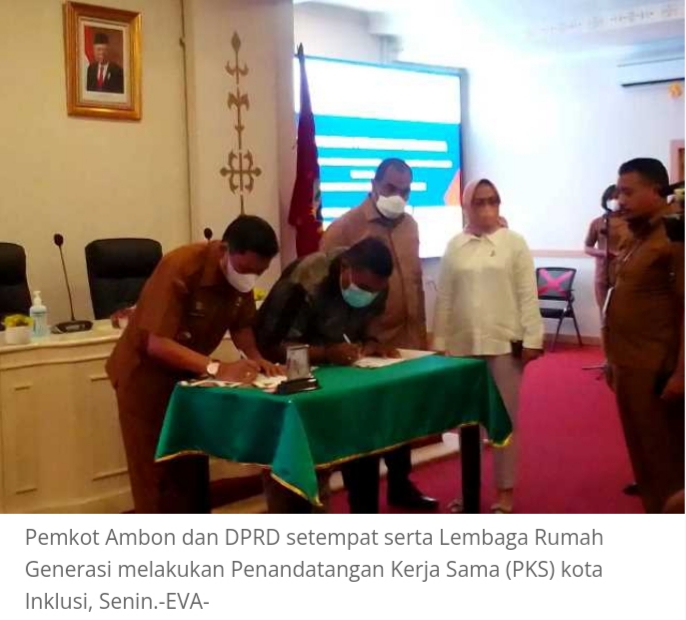 AMBON–Pemerintah Kota (Pemkot) Ambon dan DPRD Kota Ambon bersama Lembaga Rumah Generasi melakukan penandatanganan kerja sama (PKS) pelaksanaan program kemitraan Australia-Indonesia Menuju Masyarakat Inklusif (inklusi) di Kota Ambon.