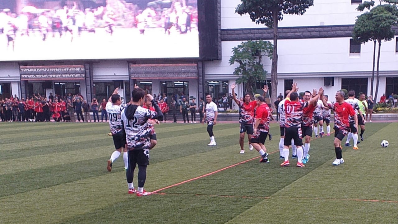 Jenderal Dudung menjadi bintang dalam pertandingan persahabatan antara tim Pati TNI AD dan Selebritis FC.