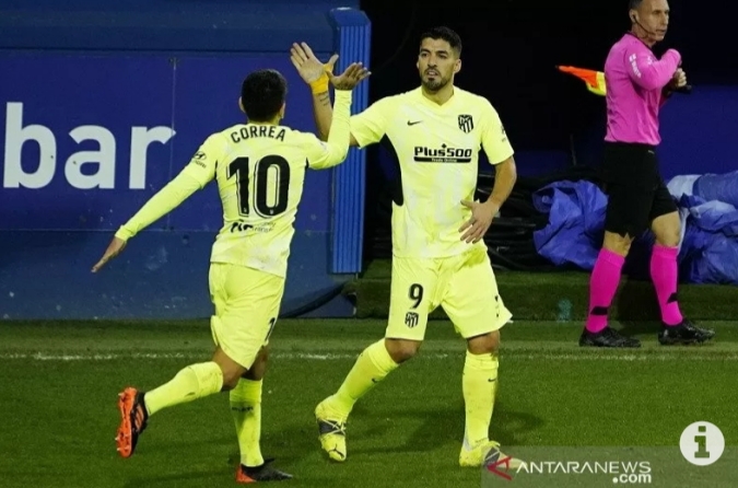 Atletico yang bertandang ke Stadion Ipurua berhasil bangkit dari ketertinggalan akibat eksekusi penalti Marko Dmitrovic lewat dua gol balasan yang dicetak Luis Suarez untuk meraih kemenangan 2-1.