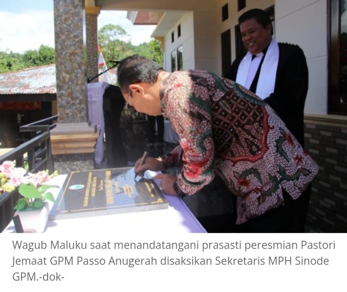 “Dengan demikian Gereja Protestan Maluku Jemaat Passo Anugerah diharapkan dapat memberikan kontribusi positif dalam pembinaan jemaat, yang dilakukan secara berkala dan berkekanjutan sesuai dengan agenda kerja Gereja Protestan Maluku, sehingga dapat membentuk karakter jemaat yang memahami kedudukannya bukan hanya sebagai anggota jemaat, tetapi juga sebagai warga negara yang baik, yang bertanggung jawab, dan memiliki tingkat partisipasi yang tinggi terhadap berbagai program dan kebijakan pemerintah,” jelas Wagub.