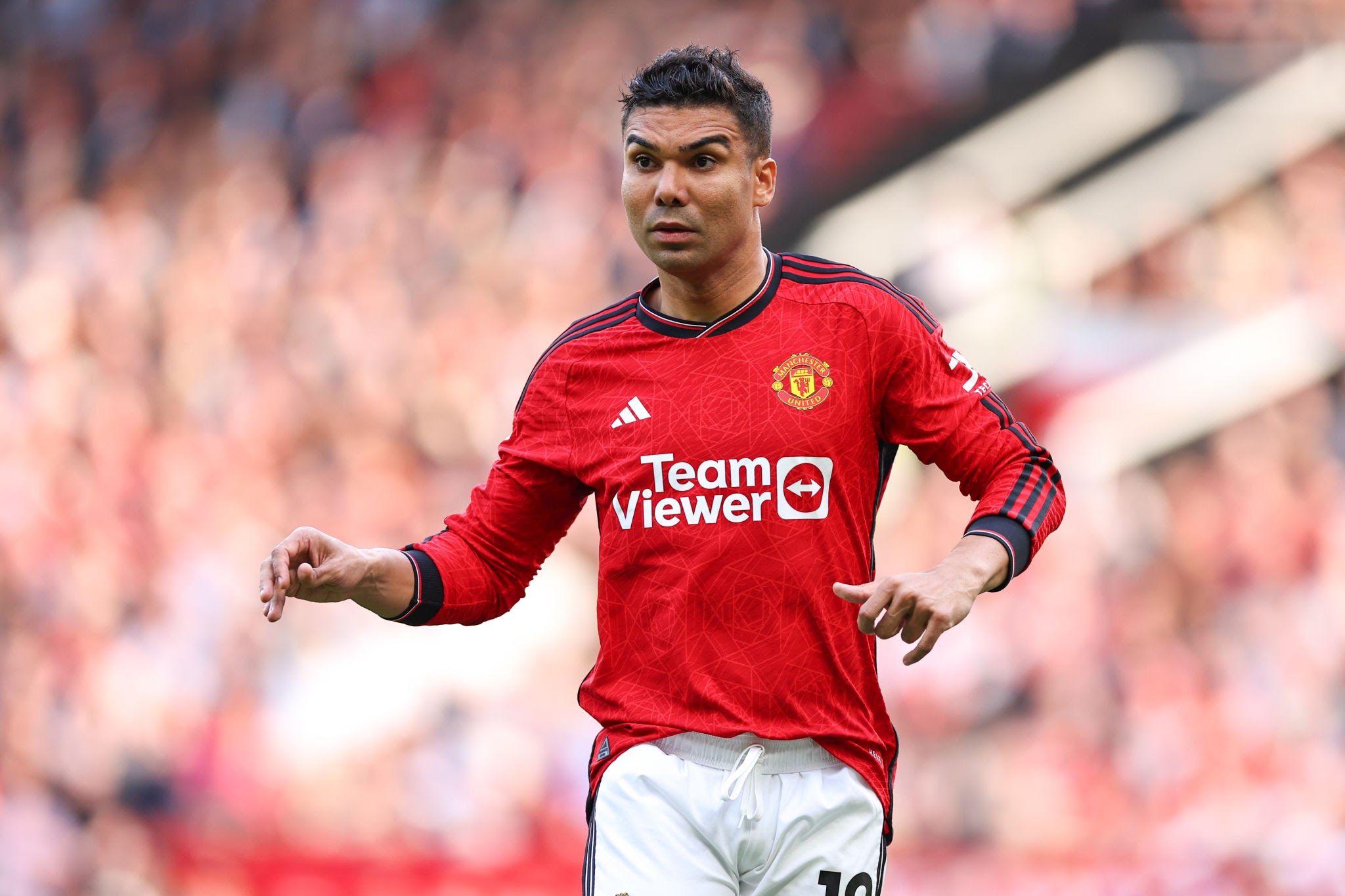 Casemiro membantah kabar dirinya akan meninggalkan Manchester United. (AMA/Getty Images)