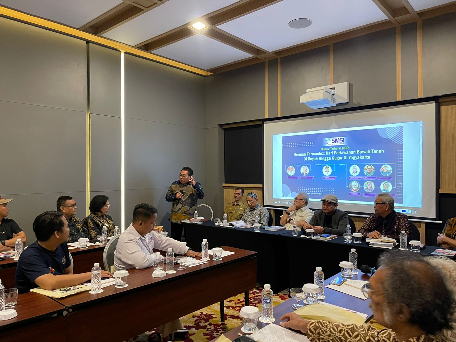 SERANG -Focus Grup Discusion (FGD) dengan mengusung tema Herman Fenandes dari perlawanan bawah tanah di Bayah hingga gugur di Yogyakarta yang menghadirkan narasumber dari tokoh pers nasional dan juga peneliti sejarah, digelar di Hotel Aston Serang, Senin (21/10-24)