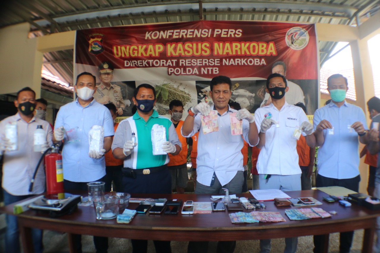 Dikatakan, sesuai laporan Ketua Tim Opsnal DitresNarkoba Polda NTB AKP I Made Yogi Purusa Utama, S.E., S.I.K., pihaknya berhasil mengamankan 10 orang tersangka termasuk pemilik pabrik narkotika.