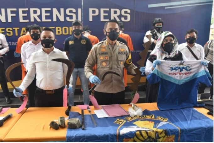 “Tiga tersangka masih di bawah umur, sehingga hanya satu tersangka yang dihadirkan kali ini,” ujar Kombes Pol M Syahduddi, SIK, MSi, saat konferensi pers di Mapolresta Cirebon, Senin (22/2/2021).