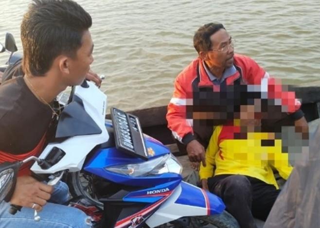 Rahmad pun meminta tolong warga sekitar yang kemudian membawanya ke Puskesmas Kuala Enok dengan memakai perahu.