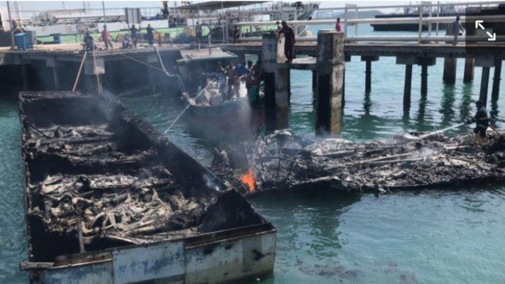Di antara kapal yang terbakar, terdapat barang bukti hasil tangkapan aparat bea cukai setempat yaitu kapal cepat dan tongkang yang telah berketetapan hukum.