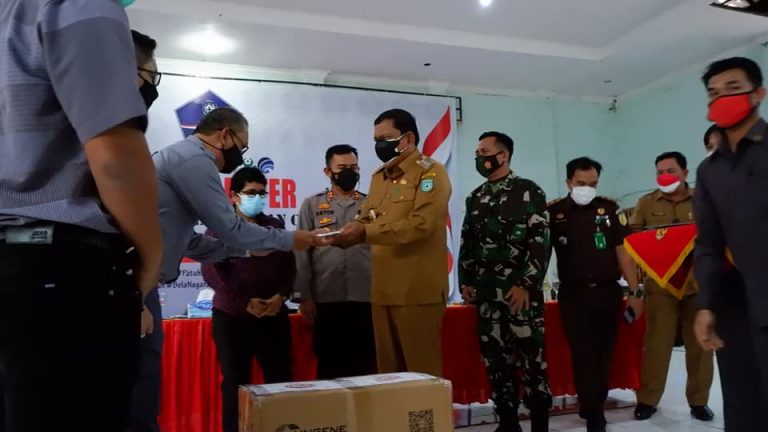 BENGKULU– Sebanyak 9.000 alat tes swab antigen dan 255 tabung oksigen diserahkan secara simbolis oleh Forum Tanggung Jawab Sosial Perusahaan (TJSLP)/Corporate Social Responsibility (CSR) dalam rangka penanganan Covid-19 di Kabupaten Bengkulu Utara pada,Senin (23/8/2021) di Posko Satgas Covid-19 BU.