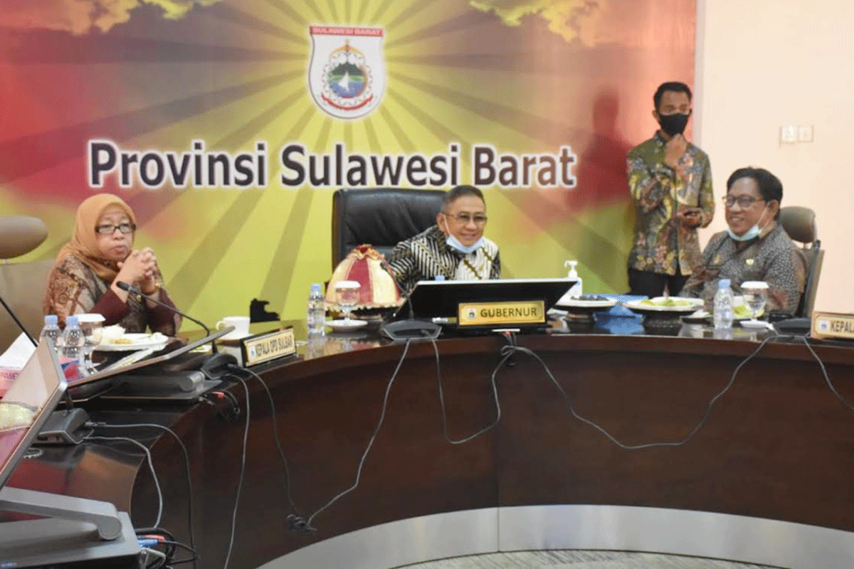 Gubernur Sulawesi Barat Ali Baal Masdar didampingi Kepala Dinas Pendidikan dan Kebudayaan Sulbar Prof Gufran Darma Dirawa mengikuti secara virtual dari ruang oval Kantor Gubernur Sulbar, Jumat (20/11/2020).