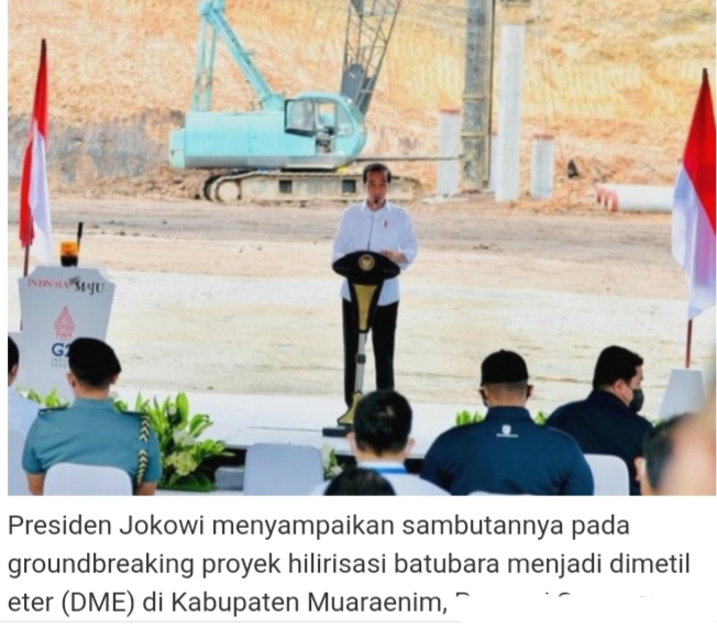 Proyek hilirisasi ini merupakan kerja sama antara PT Bukit Asam, PT Pertamina, dan investor asal Amerika Serikat, Air Products. Presiden meyakini, jika proyek ini telah berproduksi, maka berpotensi mengurangi subsidi APBN hingga kurang lebih Rp7 triliun.