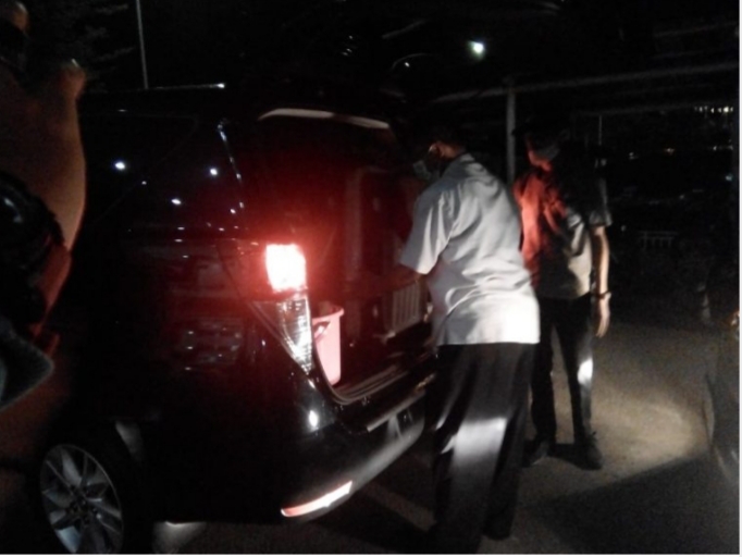 Terlihat, petugas lembaga anti rasuah tersebut keluar gedung dengan membawa 3 koper ukuran sedang dan di atas salah satu koper tersebut, terdapat satu dus air mineral.