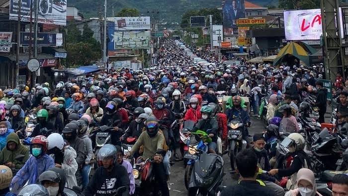 JAKARTA – Puluhan ribu kendaraan terjebak macet hingga sekitar 18 kilometer di jalur mudik Puncak – Cianjur, Jawa Barat. Serakan kendaraan itu tidak bergerak selama delapan jam karena padatnya kendaraan khususnya roda dua yang keluar masuk jalur di wilayah hukum Bogor.