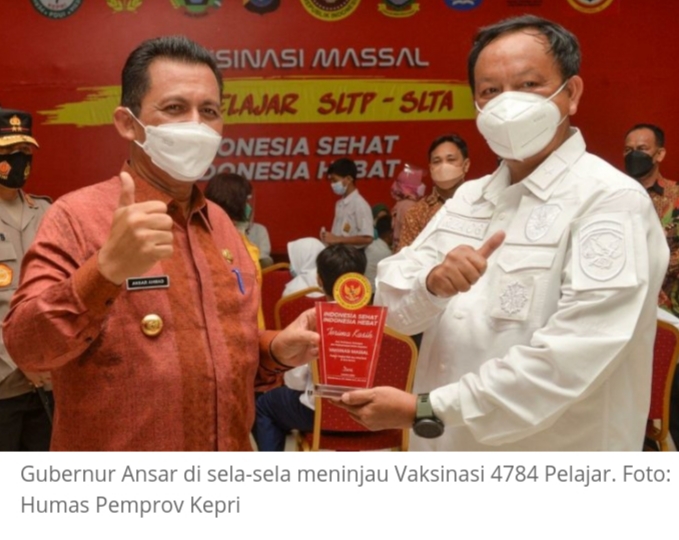 Atas nama Pemerintah Provinsi Kepri, dalam kesempatan ini Gubernur memberikan apresiasi kepada BINDA Kepri yang telah mengggelar vaksinasi untuk pelajar se-Kota Batam.