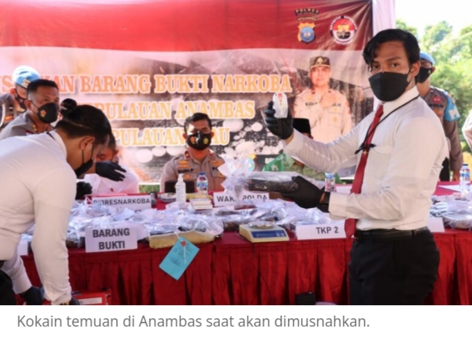 Pemusnahan kokain itu dimpimpin Wakapolda Kepri Brigjen Pol Drs. Rudij Pranoto dan didampingi DirresNarkoba Polda Kepri Kombes Pol Ahmad David S.Ik, Kabid Humas Polda Kepri Kombes Pol Harry Goldenhardt S., S.IK., M.Si. Bupati Kabupaten Kepulauan Anambas Abdul Haris SH, Kapolres Kepulauan Anambas AKBP Syafrudin Semidang Sakti, S,Ik dan Forkopimda Kabupaten Kepulauan Anambas.