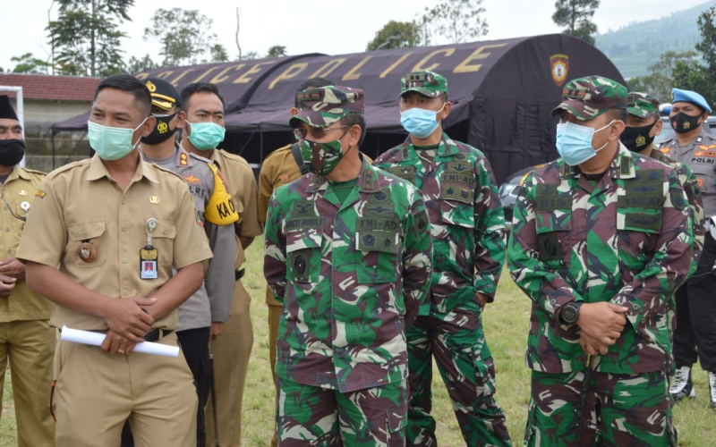 BOYOLALI — Pangdam IV/Diponegoro Mayjen TNI Bakti Agus Fadjari, SIP, MSi melakukan pemantauan perkembangan aktivitas Gunung Merapi serta meninjau kesiapan Tempat Penampungan Pengungsian Sementara (TPPS) di Desa Tlogolele dan Desa Klakah, Kecamatan Selo, Kabupeten Boyolali, Senin (23/11/2020).