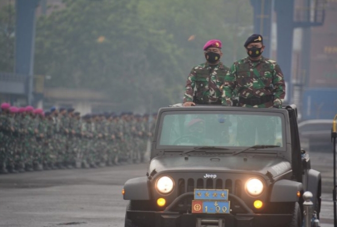 JAKARTA — Kepala Staf Angkatan Laut (KASAL) Laksamana TNI Yudo Margono, SE, MM memimpin Apel Kesiapan TNI AL 2020, Senin (23/11/2020), di Dermaga JICT II Pelabuhan Tanjung Priok, Jakarta Utara.