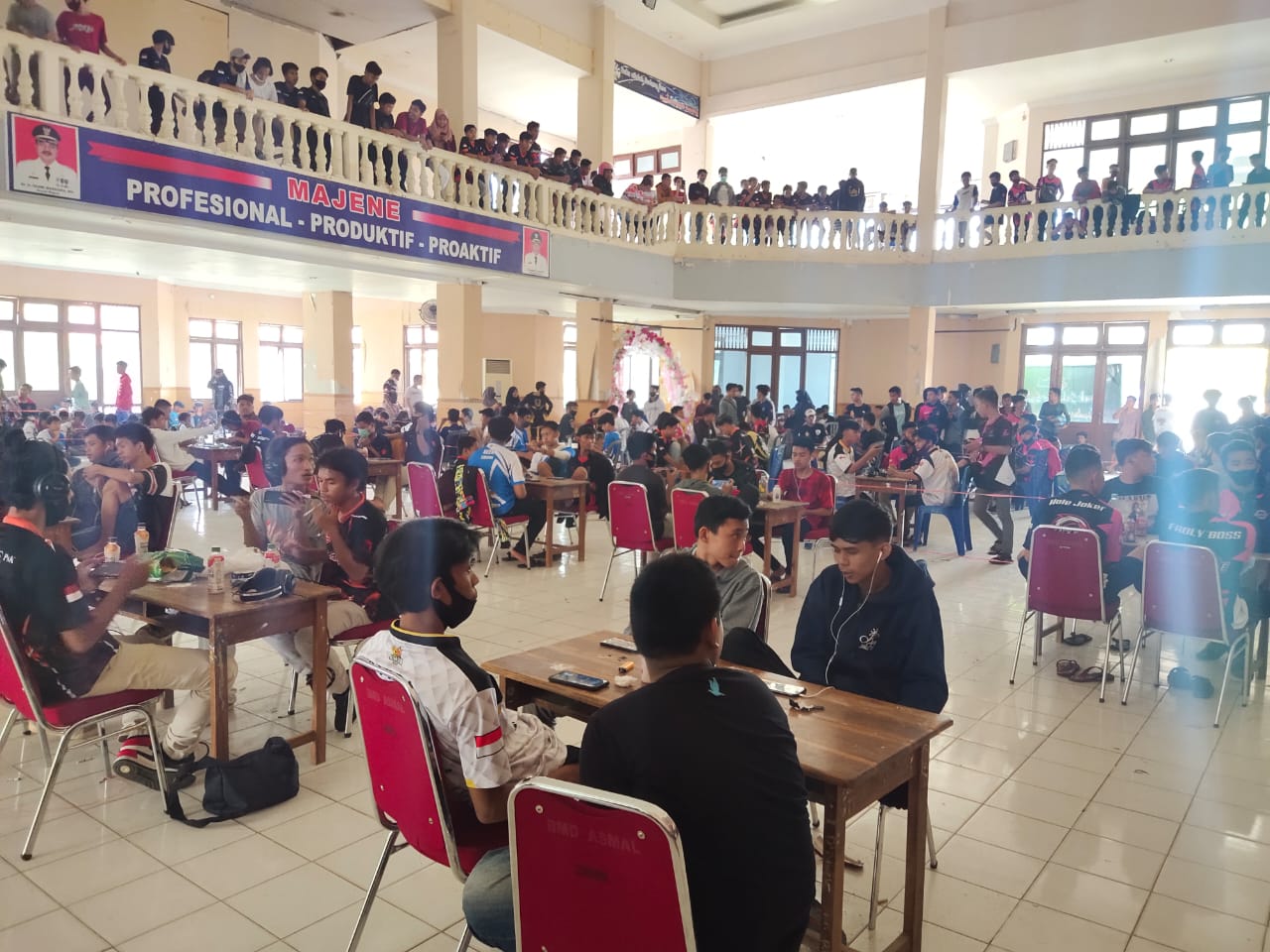 Tournament Game Online Free Fire Tj Fams Gaming Champions 2020 yang dilaksanakan di Gedung Assamalewuang Majene di Lingkungan Battayang, Kelurahan Banggae, Kecamatan Banggae, Senin (23/11/2020), dibubarkan petugas kepolisian.