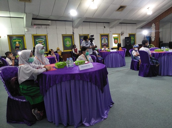SAMARINDA – Dua belas siswa SD dari Samarinda, Tenggarong, Kukar, dan Sangatta, Kutim, mengikuti pelatihan presenter cilik di RRI Samarinda, Jalan M Yamin Samarinda, Selasa (24/11/2020).