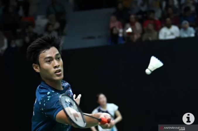 NUSA DUA–Shesar Hiren Rhustavito menumbangkan Sitthikom Thammasin 21-12, 15-21, 21-16 di Nusa Dua, Bali, Selasa. Kemenangan ini membuat Shesar menjadi pebulu tangkis tunggal putra Indonesia pertama yang lolos ke babak 16 besar Indonesia Open 2021.