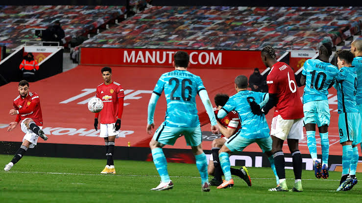 Bahkan dimenit ke 82 Tendangan bebas Bruno Fernandes pun berhasil mempertegas kemenangan MU atas sang rival Liverpool.