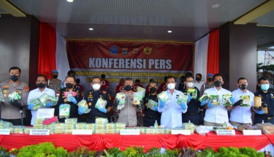 BANDARLAMPUNG – Polda Lampung, Polda Aceh, dan Ditjen Bea Cukai, berhasil mengungkap jaringan internasional pengedar narkotika.
