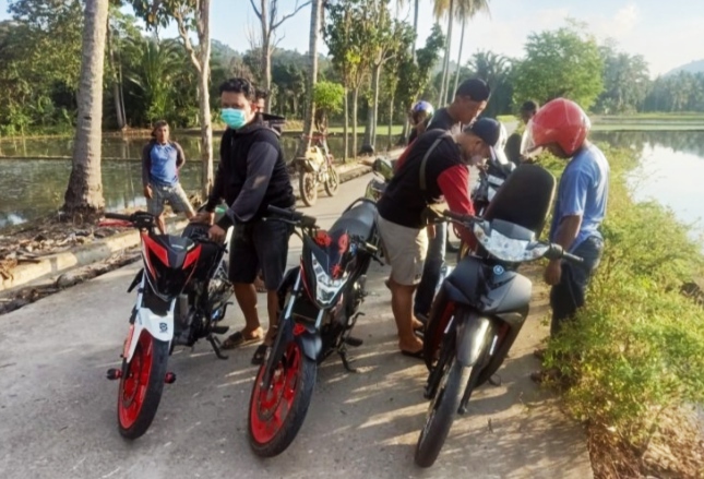 POLMAN – Polisi dari Polsek Tapango, Kabupaten Polewali Mandar, Sulawesi Barat, membubarkan balap liar dan mengamankan lima sepeda motor.