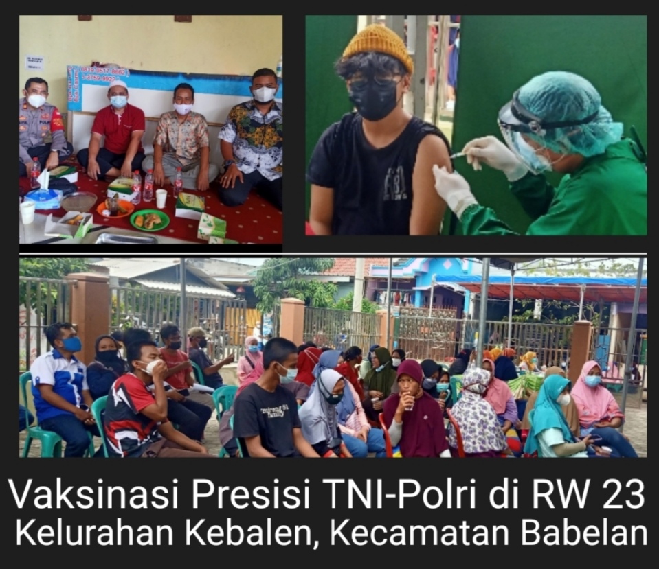 Sementara itu sekitar 300 warga mengikuti vaksinasi Presisi TNI dan Polri yang digelar di halaman Masjid Miftahul Janah, RW 23 Kelurahan Kebalen, Kecamatan Babelan, Kabupaten Bekasi.