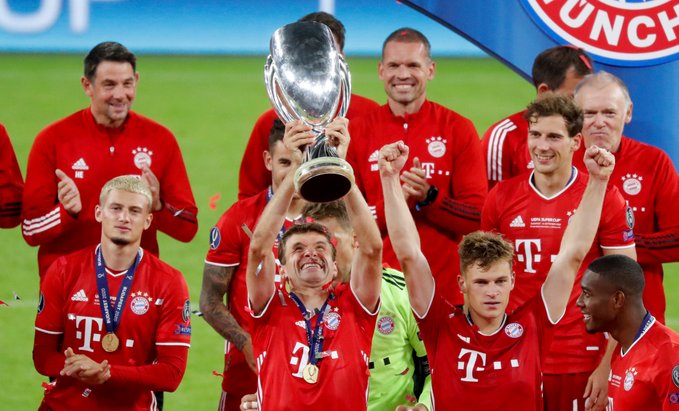 Juara Liga Europa Sevilla memimpin terlebih dahulu melalui eksekusi penalti Lucas Ocampos pada menit ke-13, Leon Goretzka menyamakan kedudukan untuk Bayern pada menit ke-34, sebelum kemudian Javier Martinez memastikan raihan tofi keempat Bayern pada 2020.